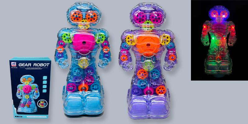 Toy Battery Robot Translucent Gears Light Up